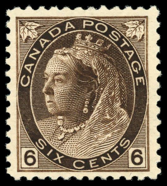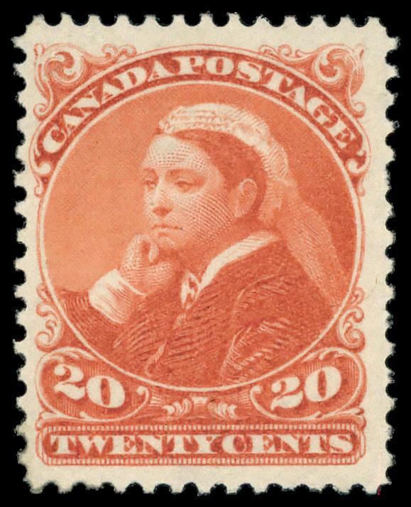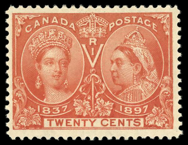 1897, Queen Victoria Jubilee, 20¢ vermilion (Scott 59), o.g., hinge remnant, Fine to Very Fine. Scott $300. (Image)