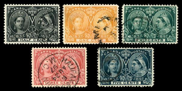 1897, ½¢-5¢ Queen Victoria Jubilee (Scott 50-54), Very Fine. Scott $181. (Image)
