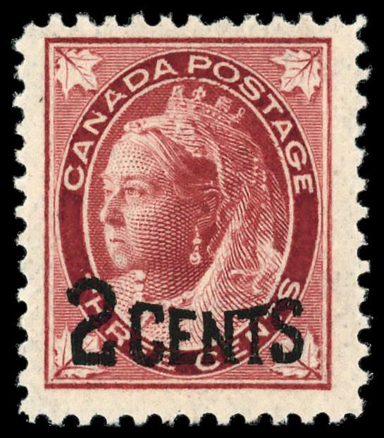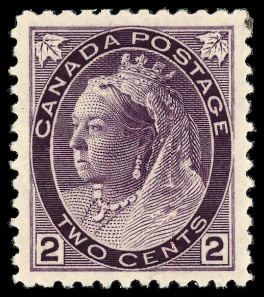 1898, Queen Victoria "Numeral", 2¢ violet (Scott 76), o.g., small hinge remnant, Extremely Fine. Unitrade 76i; C$80 ($60). Scott $50. (Image)