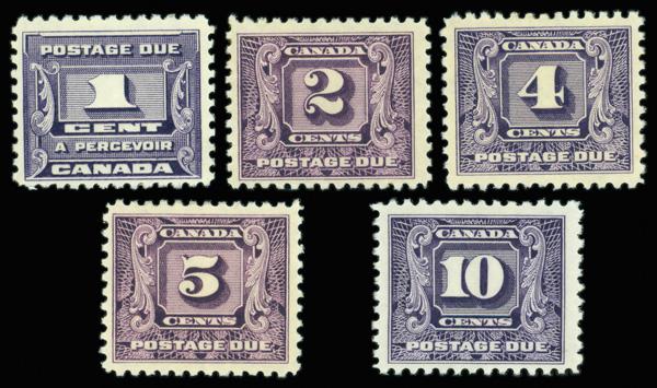 Postage Dues, 1930, 1¢ to 10¢ complete (Scott J6-J10), set of 5, o.g., lightly hinged or hinge remnant, Fine to Very Fine. Scott $167. (Image)