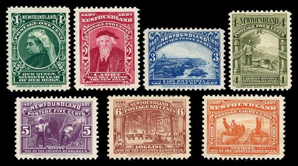 1897 Discovery of Newfoundland complete (Scott 61-74), o.g., hinge remnants & some no gum (60c thin), Fine to Very Fine. Scott $663. (Image)