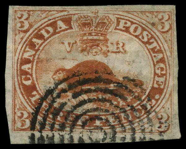 1852, Beaver, 3d red, on wove paper, imperforate (Scott 4), Fine to Very Fine. Scott $200. (Image)