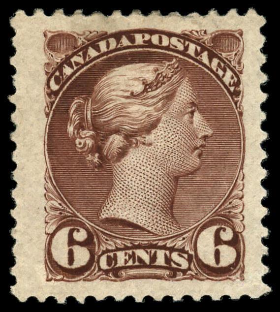1888, Small Queen, 6¢ red brown (Scott 43), o.g., hinge remnant, jumbo margins, Extremely Fine. Scott $225. (Image)