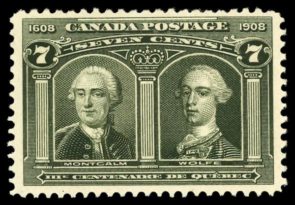 1908, 7¢ Quebec Tercentenary (Scott 100), o.g., very lightly hinged, Very Fine. Scott $140. (Image)