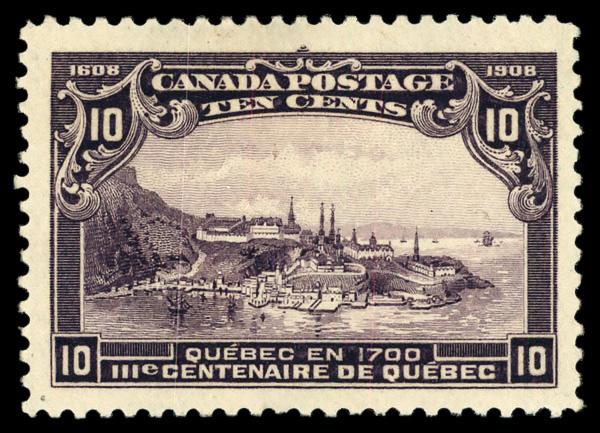 1908, 10¢ Quebec Tercentenary (Scott 101), o.g., hinge remnant, Very Fine to Extremely Fine. Scott $200. (Image)