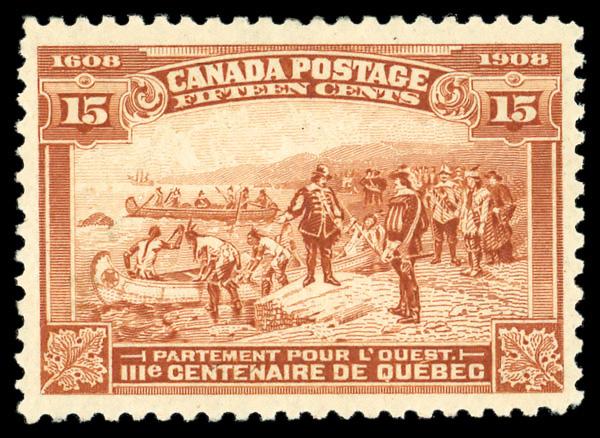 1908, 15¢ Quebec Tercentenary (Scott 102), o.g., lightly hinged, Very Fine. Scott $225. (Image)