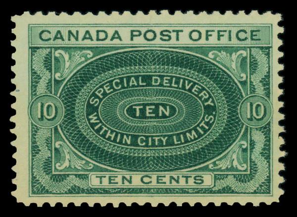 Special Delivery, 1898, 10¢ green (Scott E1a), o.g., never hinged, Fine to Very Fine. Scott $420. (Image)