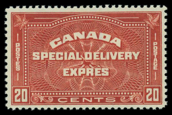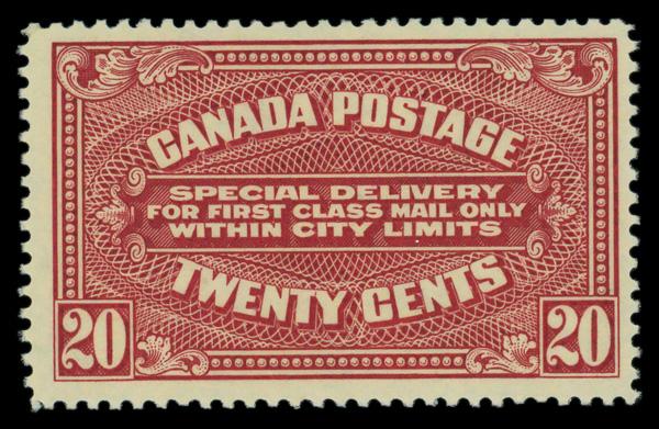 Special Delivery, 1922, 20¢ carmine, dry printing (Scott E2), o.g., never hinged, Fine to Very Fine. Scott $300. (Image)