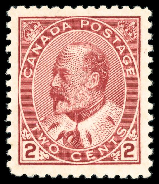 1903, King Edward VII, 2¢ carmine, type II (Scott 90), o.g., very lightly hinged, Extremely Fine. Unitrade 90i; C$120 ($90). (Image)