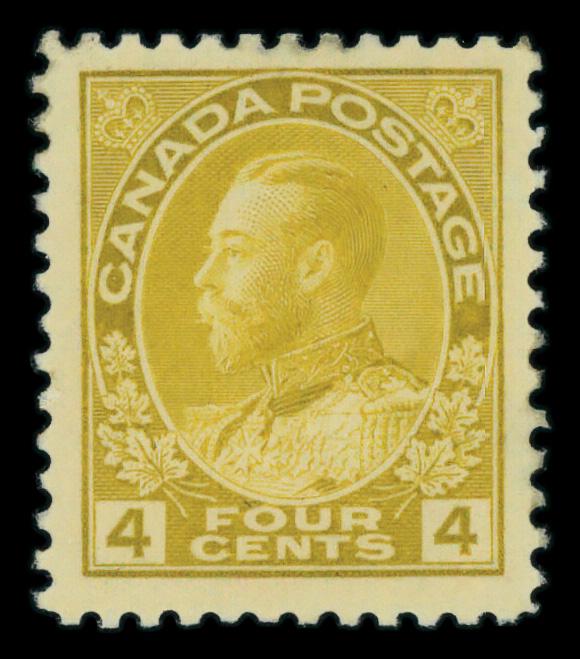 1925, King George V "Admiral", 4¢ yellow ocher, dry printing (Scott 110d), o.g., hinged, Very Fine. Scott $53. (Image)