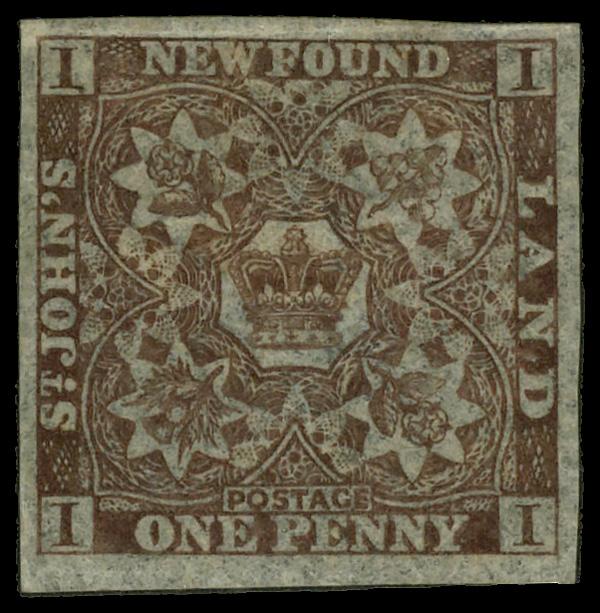 1857, 1d brown violet (Scott 1), single, Very nice 4 margin copy, o.g., hinged, Fine to Very Fine. Scott $125. (Image)