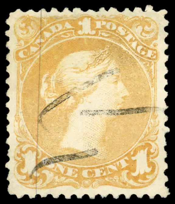 1868, Large Queen, 1¢ yellow orange (Scott 23), paper 10, Fine to Very Fine. Scott $180. (Image)