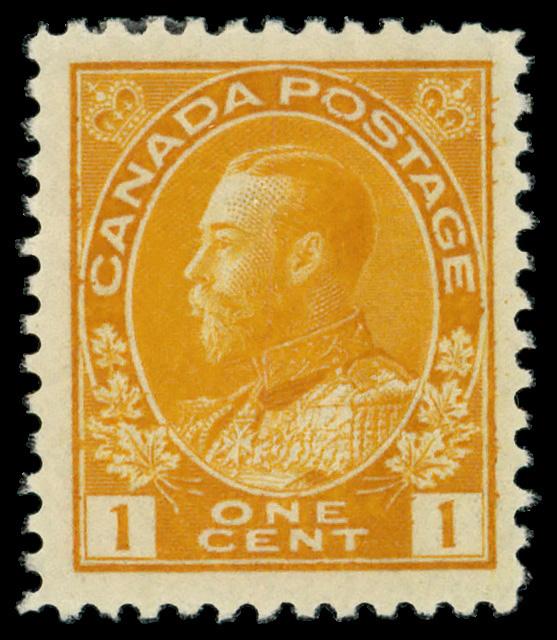 1922, King George V "Admiral", 1¢ yellow, wet printing, Die I (Scott 105), o.g., hinge remnant, Very Fine to Extremely Fine. Scott $30. (Image)
