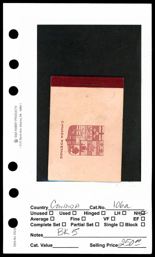 1912, King George V "Admiral", 2¢ carmine, booklet pane of 6 (Scott 106a), o.g., never hinged, Fine to Very Fine. Unitrade BK5c. Scott $200. (Image)