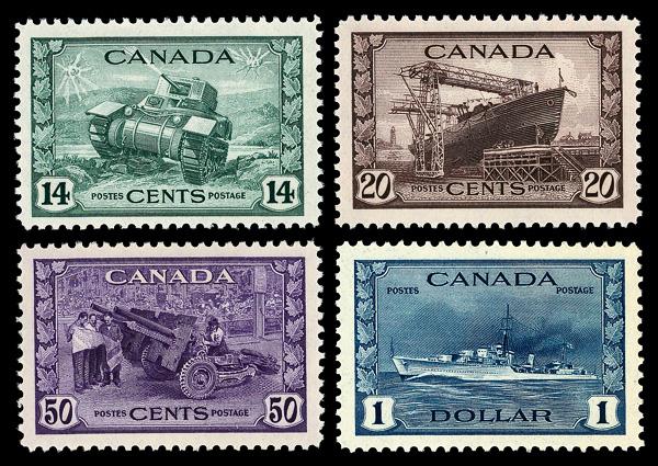1942-43, King George VI "War" definitives, 1¢ to $1 complete (Scott 249-262), complete set of singles1, o.g., never hinged, Fine to Very Fine. Scott $174. (Image)