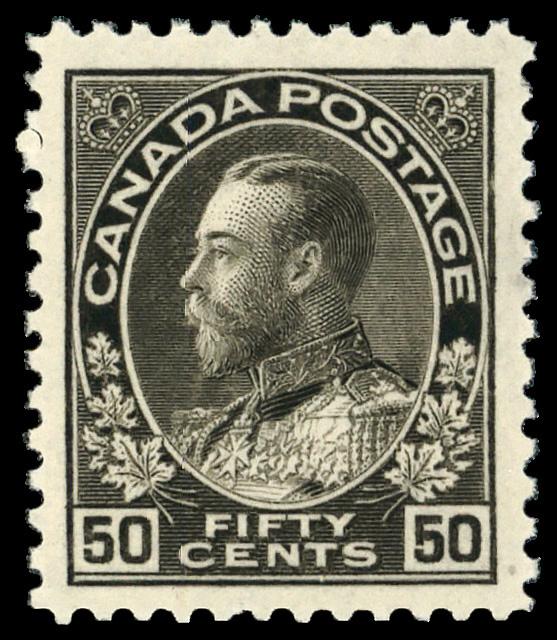 1925, King George V "Admiral", 50¢ black brown, dry printing (Scott 120), o.g., lightly hinged, Very Fine. Scott $70. (Image)