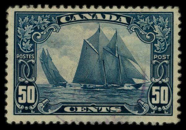 1929, 50¢ Bluenose (Scott 158), single, Fine to Very Fine. Scott $65. (Image)