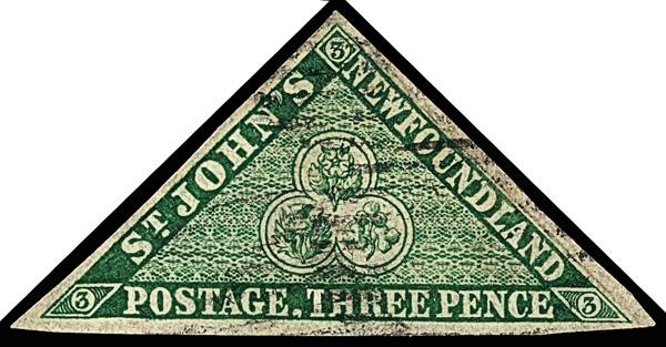 Newfoundland, 1857, 3 pence green (Scott 3), single, Nice 3 margin copy for this issue., Fine to Very Fine. Scott $575. (Image)