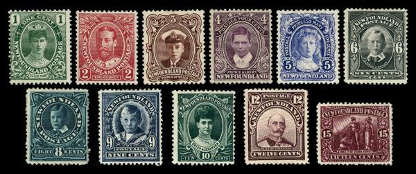 1911 Royal Family issue complete (Scott 104-114), o.g., hinge remnants, Fine to Very Fine. Scott $368. (Image)