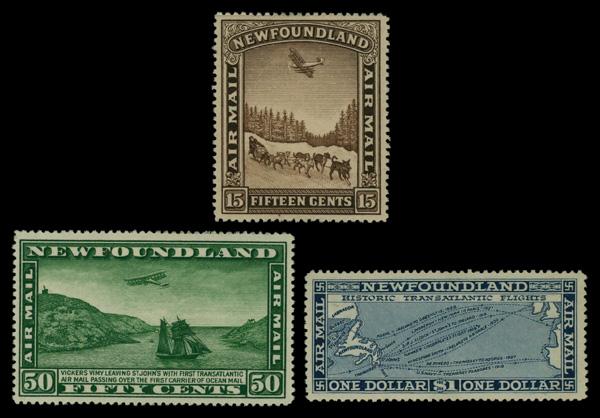 Airmail, 1931, 15¢ to $1 Pictorial issue complete, unwatermarked (Scott C6-C8), complete set of singles, o.g., hinged, Fine to Very Fine. Scott $113. (Image)