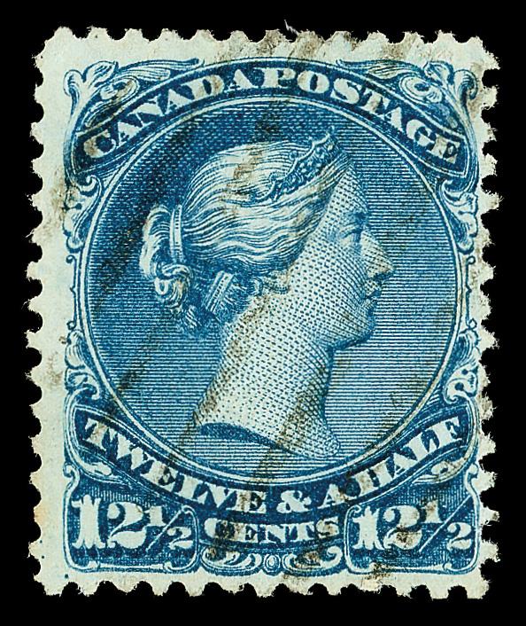 1868, Large Queen, 12½¢ blue, watermarked (Scott 28a), pristine and lightly cancelled, sound and appealing with clear watermark, Fine to Very Fine. Scott $400. (Image)