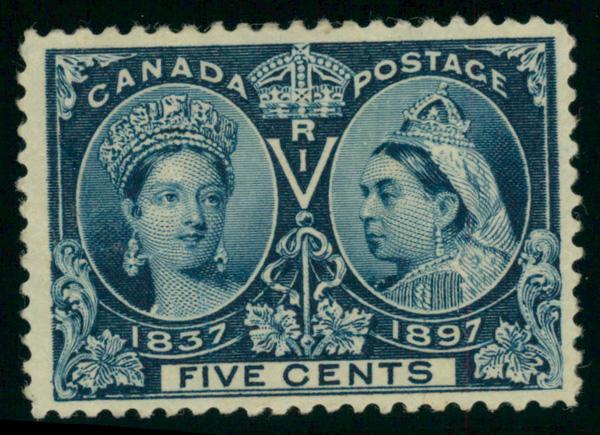 1897, Queen Victoria Jubilee, 5¢ deep blue (Scott 54), o.g., hinged, Very Fine. Scott $70. (Image)