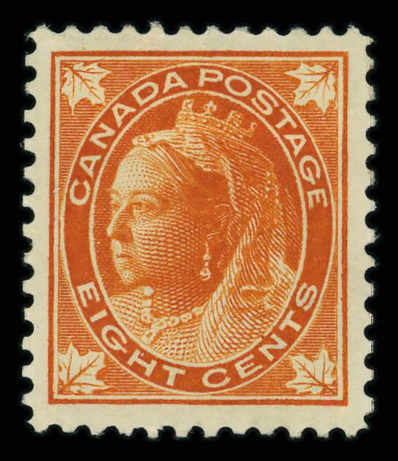 1897, Queen Victoria "Maple Leaf", 8¢ orange (Scott 72), o.g., hinge remnant (pencil mark on gum), Very Fine. Scott $325. (Image)