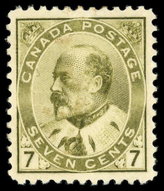 1903, King Edward VII, 7¢ olive bister (Scott 92), o.g., lightly hinged, Very Fine. Scott $225. (Image)
