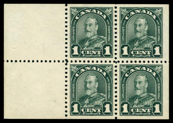 1930, 1c deep green King George V, booklet pane (Scott 163a), booklet pane of 4, o.g., hinged, Very Fine to Extremely Fine. Scott $120. (Image)