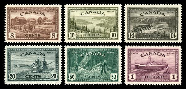 1946, King George VI "Peace" definitives, 8¢ to $1 complete (Scott 268-273), o.g., never hinged, Extremely Fine. Scott $89. (Image)