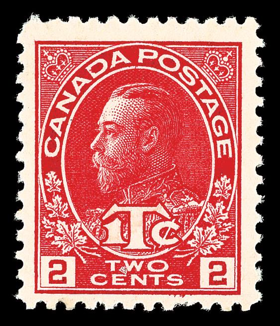 War Tax, 1916, 2¢+1¢ carmine, die II (Scott MR3a), in radiant color on immaculate paper; single nibbed perforation at bottom; gum never hinged but with vertical lines (appearing to be from a paperclip), Fine to Very Fine, a pretty addition to any album page. Scott $825. (Image)
