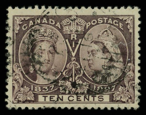 1897, Queen Victoria Jubilee, 10¢ brown violet (Scott 57), Very Fine. Scott $120. (Image)