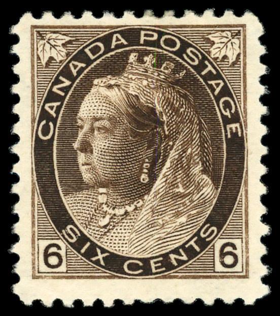 1898, Queen Victoria "Numeral", 6¢ brown (Scott 80), o.g., hinge remnant, Fine to Very Fine. Scott $200. (Image)