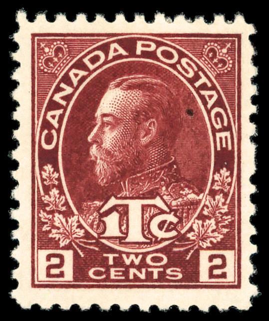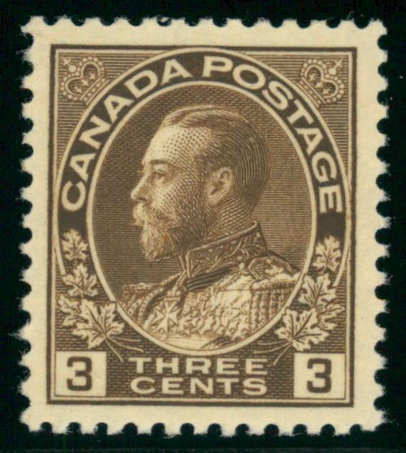 1918, King George V "Admiral", 3¢ brown, dry printing (Scott 108c), o.g., lightly hinged, Extremely Fine. Scott $35. (Image)