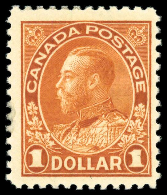 1923, King George V "Admiral", $1 orange, dry printing (Scott 122), o.g., lightly hinged, Fine to Very Fine. Scott $85. (Image)