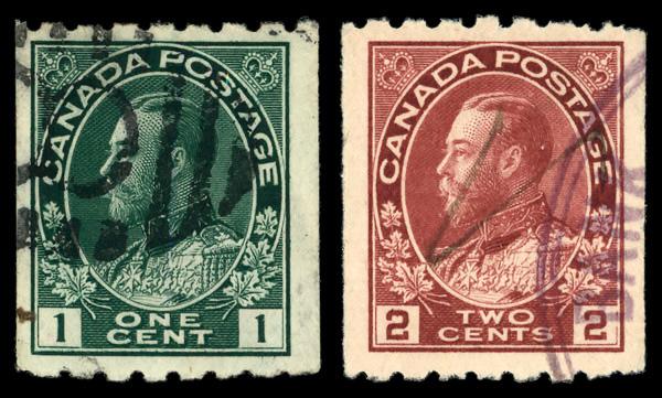 1913, King George V "Admiral" coils, 1¢ to 2¢ complete, perf. 8 horizontally (Scott 123-124), Fine to Very Fine. Scott $130. (Image)
