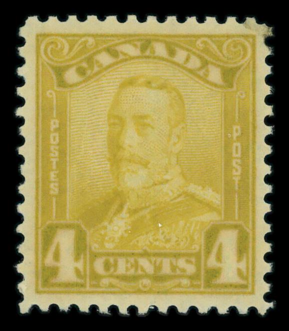 1929, King George V "Scroll", 4¢ bister (Scott 152), o.g., very lightly hinged, Very Fine. Scott $23. (Image)