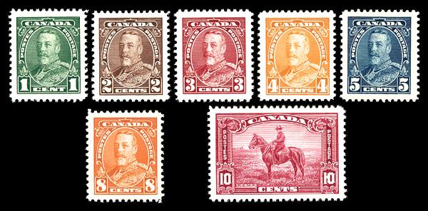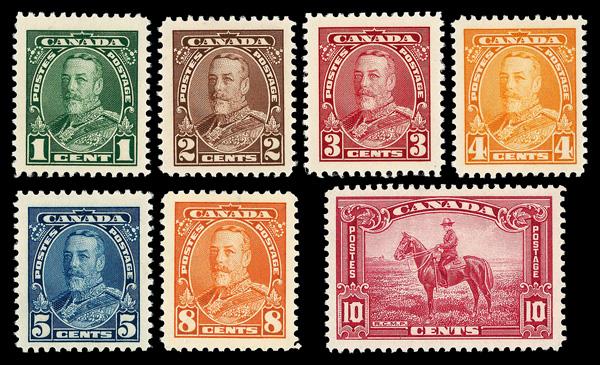 1935, King George V Pictorials, 1¢ to $1 complete (Scott 217-227), o.g., lightly hinged or hinge remnant, Very Fine to Extremely Fine. Scott $120. (Image)