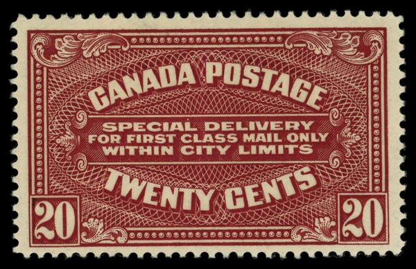 Special Delivery, 1922, 20¢ carmine, dry printing (Scott E2), o.g., very lightly hinged, Very Fine to Extremely Fine. Scott $100. (Image)