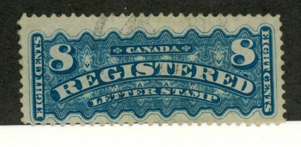 Registry, 1876, 8¢ dull blue (Scott F3), single, Fine to Very Fine. Scott $350. (Image)