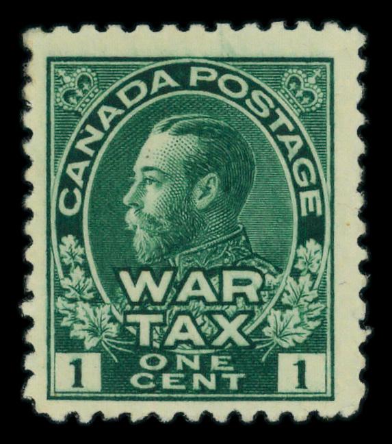 War Tax, 1915, 1¢ green (Scott MR1), o.g., small hinge remnant, Fine to Very Fine. Scott $28. (Image)