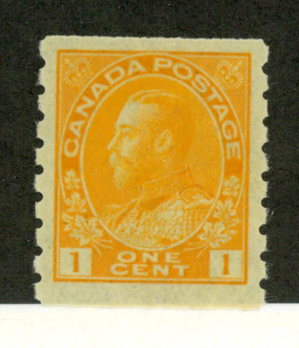 1923, King George V "Admiral" coil, 1¢ yellow, Die I, wet printing, perf. 8 vertically (Scott 126b), single, o.g., never hinged, Fine to Very Fine. Scott $60. (Image)