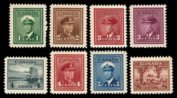 1942-43, 1c-$1 War Effort, complete (Scott 249-262), set of 14, o.g., never hinged, Very Fine to Extremely Fine. Scott $173. (Image)