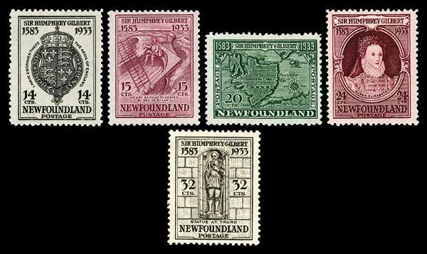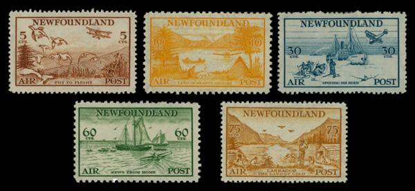 Airmail, 1933, 5¢-75¢ Labrador complete (Scott C13-C17), complete set of singles, o.g., hinged, Fine to Very Fine. Scott $176. (Image)