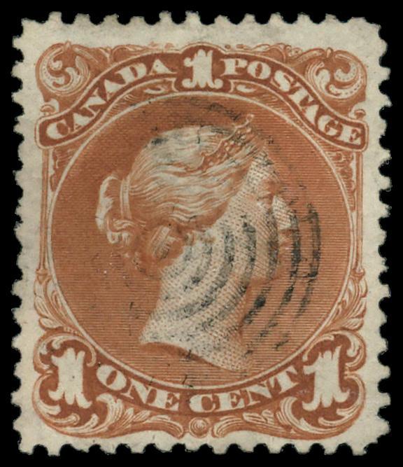 1868, Large Queen, 1¢ brown red (Scott 22), Fine to Very Fine. Scott $150. (Image)