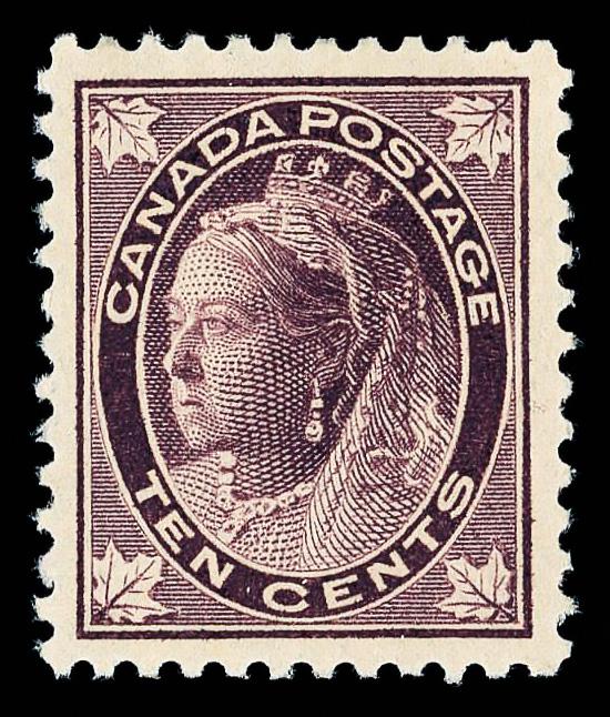 1898, Queen Victoria "Maple Leaf", 10¢ brown violet (Scott 73), o.g., hinge remnant, Very Fine. Scott $600. (Image)