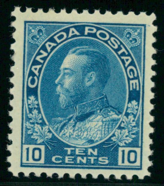 1922, King George V "Admiral", 10¢ blue, wet printing (Scott 117), o.g., lightly hinged, Fine to Very Fine. Scott $60. (Image)
