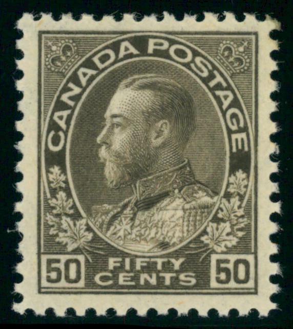 1925, King George V "Admiral", 50¢ black brown, dry printing (Scott 120), o.g., very lightly hinged, Very Fine. Scott $70. (Image)