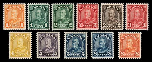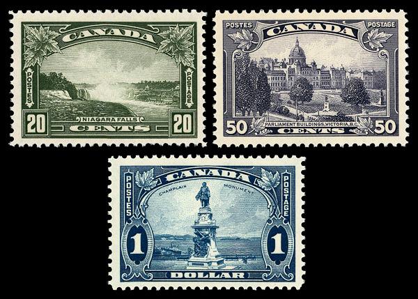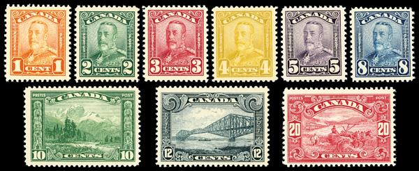 1935, King George V Pictorials, 1¢ to $1 complete (Scott 217-227), complete set of singles, o.g., never hinged, Fine to Very Fine. Scott $181. (Image)