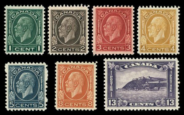 1932, 1c-13c King George V defintives, complete (Scott 195-201), set of 7, o.g., lightly hinged or hinge remnant, Very Fine. Scott $141. (Image)